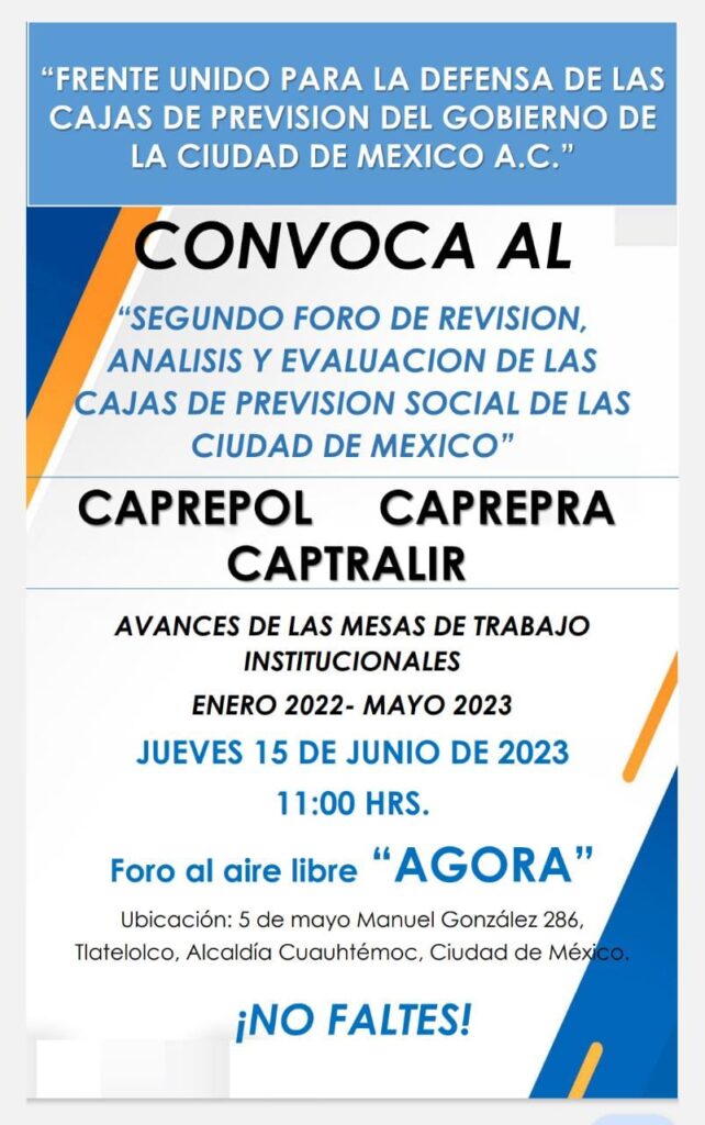 SEGUNDO FORO DE REVISIÓN, ANALISIS Y EVALUACIÓN DE LAS CAJAS DE PREVISIÓN SOCIAL DE LA CIUDAD DE MÉXICO